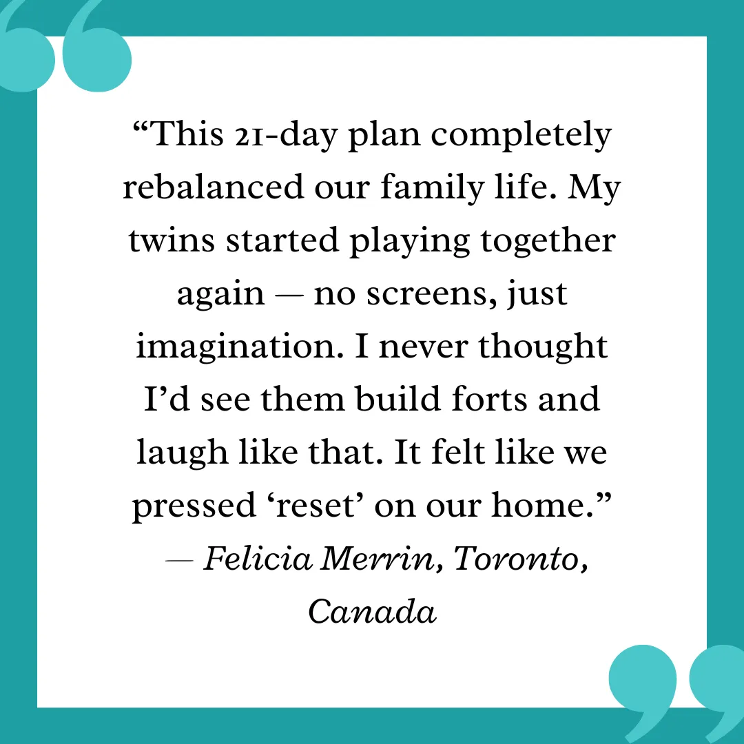 While other parents struggle with escalating screen battles, you'll be reconnecting with your child using our proven system.